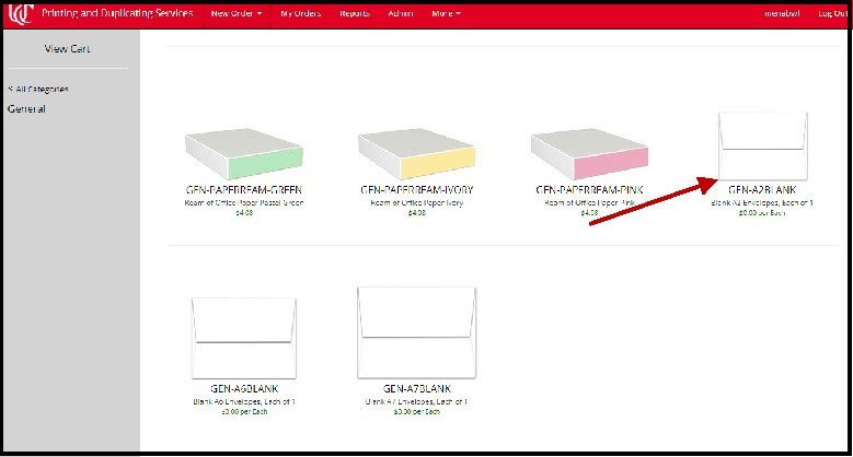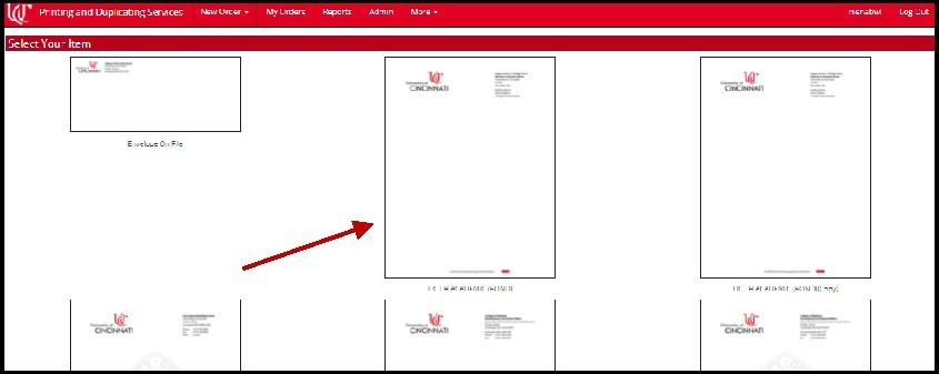Choose the item you need to order. For this example, we will order UC Academic letterhead. Choose that icon to proceed.