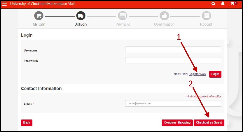 Otherwise, you can Checkout as Guest (2).