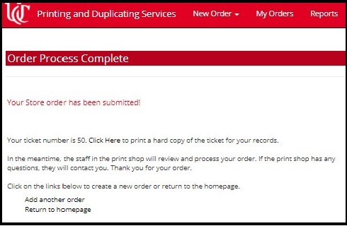 You will receive a confirmation that your order has been submitted, with a ticket number for your reference.
