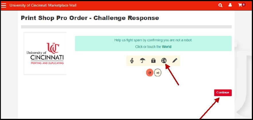 Click the image mentioned in the CAPTCHA text and click Continue.