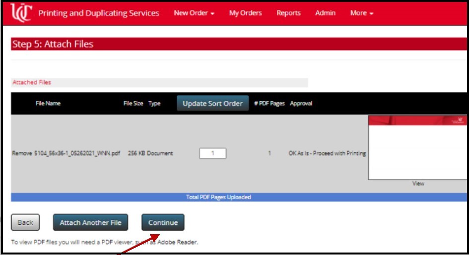If you don’t need to attach any more files, click Continue to review your order and receive your initial estimate. As noted on this page, this is only an estimate based upon the options you selected during the order process. If our staff determines that any adjustments are needed, they will contact you with a new estimate.