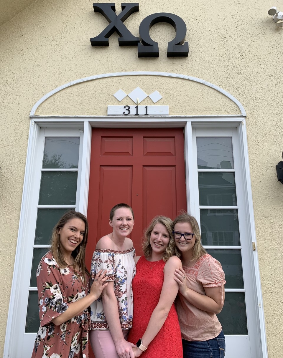 Madison Alvarez (far right) poses in front of a building during her study abroad in Botswana.